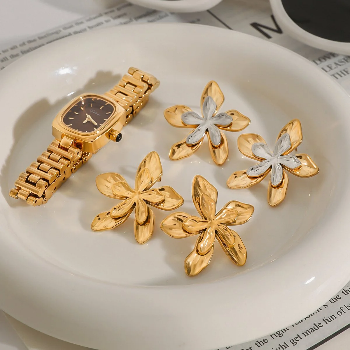 Material: High-quality stainless steel with a radiant finish, representing resilience and timeless beauty.(18K PVD gold plating)